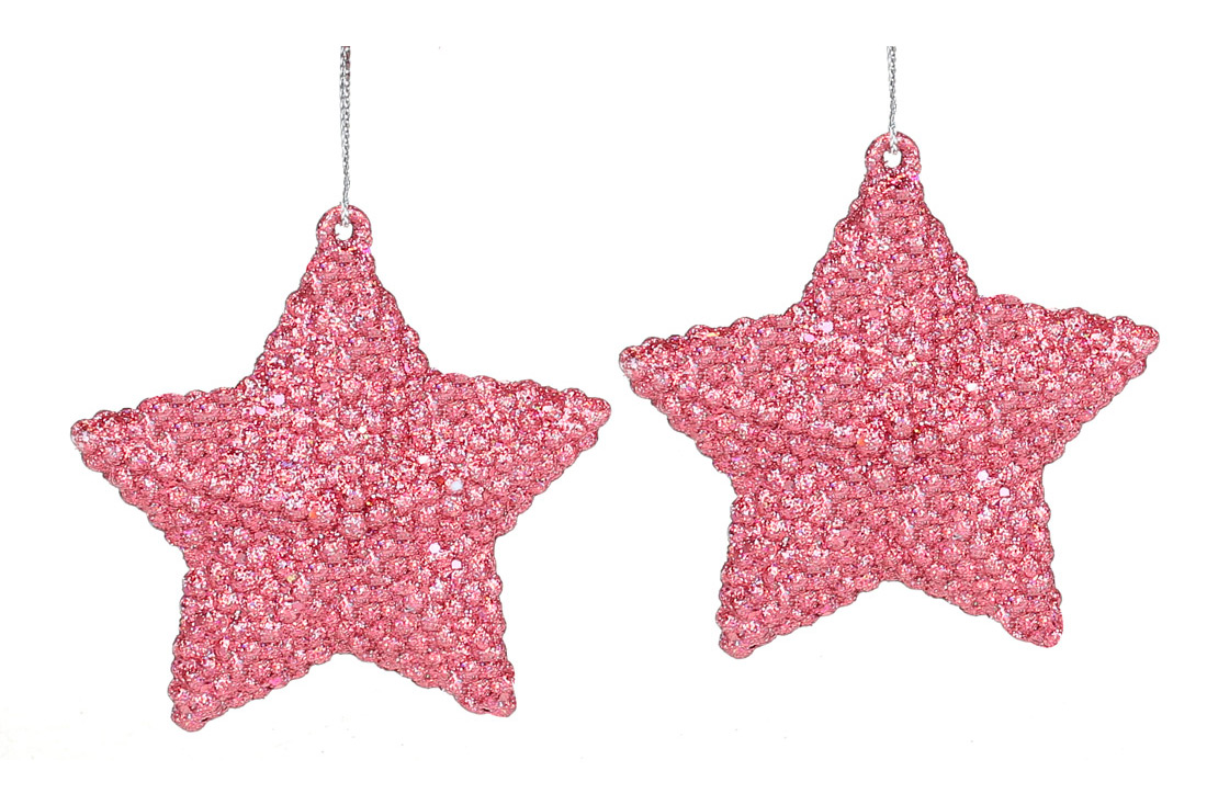 Набір (2шт) ялинкових прикрас Зірка 7.5см, колір - полуничний гліттер