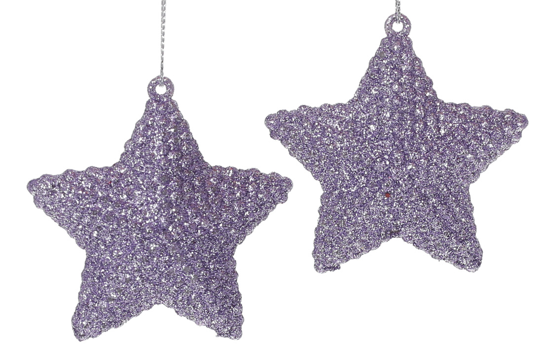 Набір (2шт) ялинкових прикрас Зірка 7.5см, колір - ніжно-ліловий гліттер