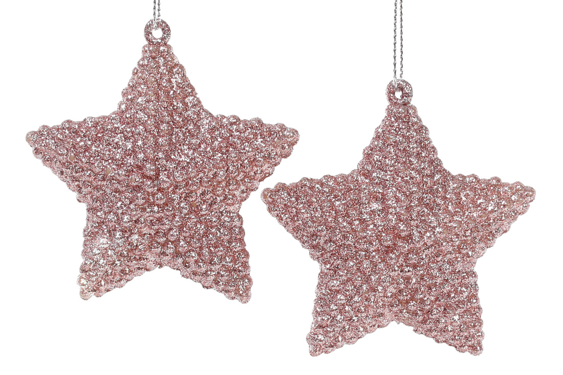 Набір (2шт) ялинкових прикрас Зірка 7.5см, колір - ніжно-рожевий гліттер