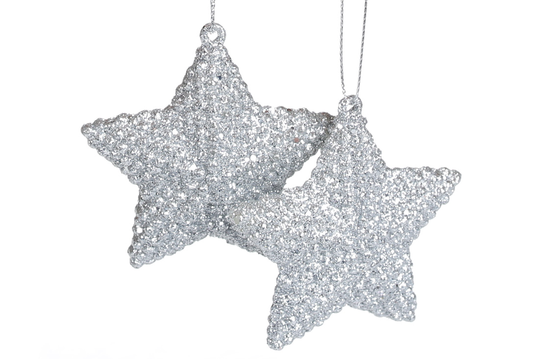 Набір (2шт) ялинкових прикрас Зірка 7.5см, колір - срібний гліттер