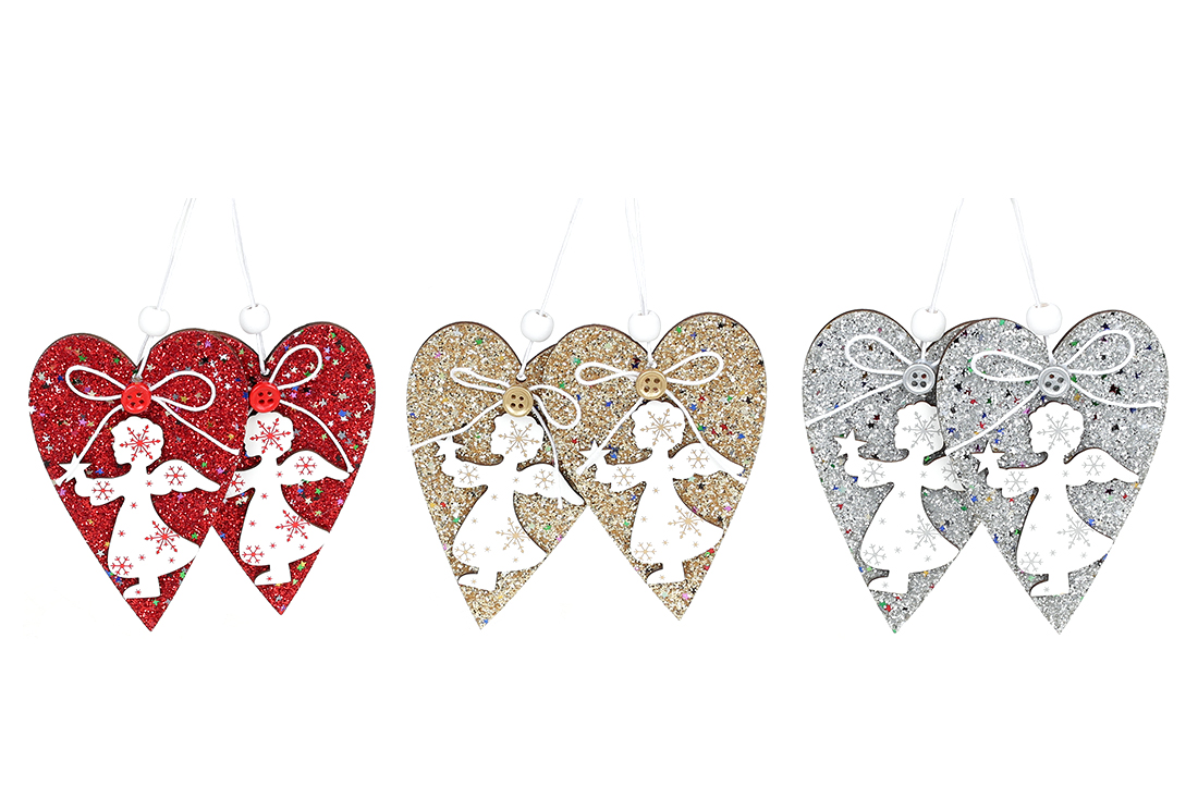 Набір (2шт) новорічних прикрас Серце, 10.5см, 3 дизайни
