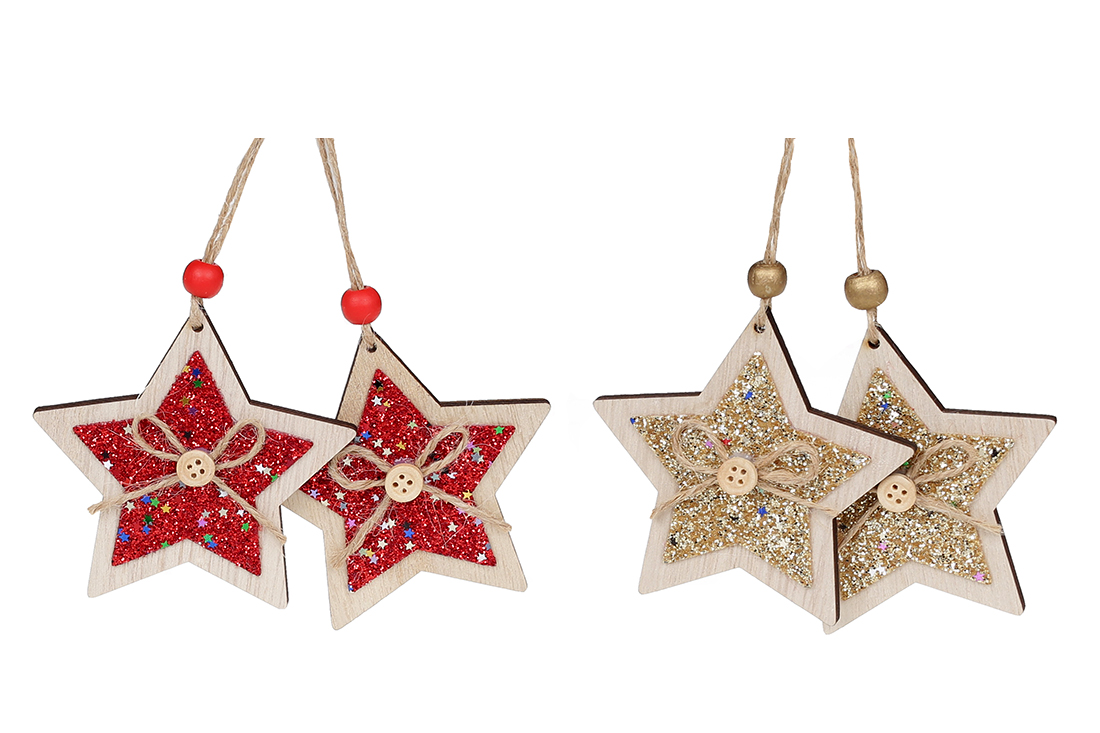 Набір (2шт) новорічних прикрас Зірка, 8.5см, 2 дизайни