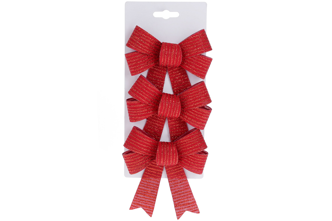 Набір (3 шт) декоративних бантів 10*12см, колір - червоний з гліттерною смужкою
