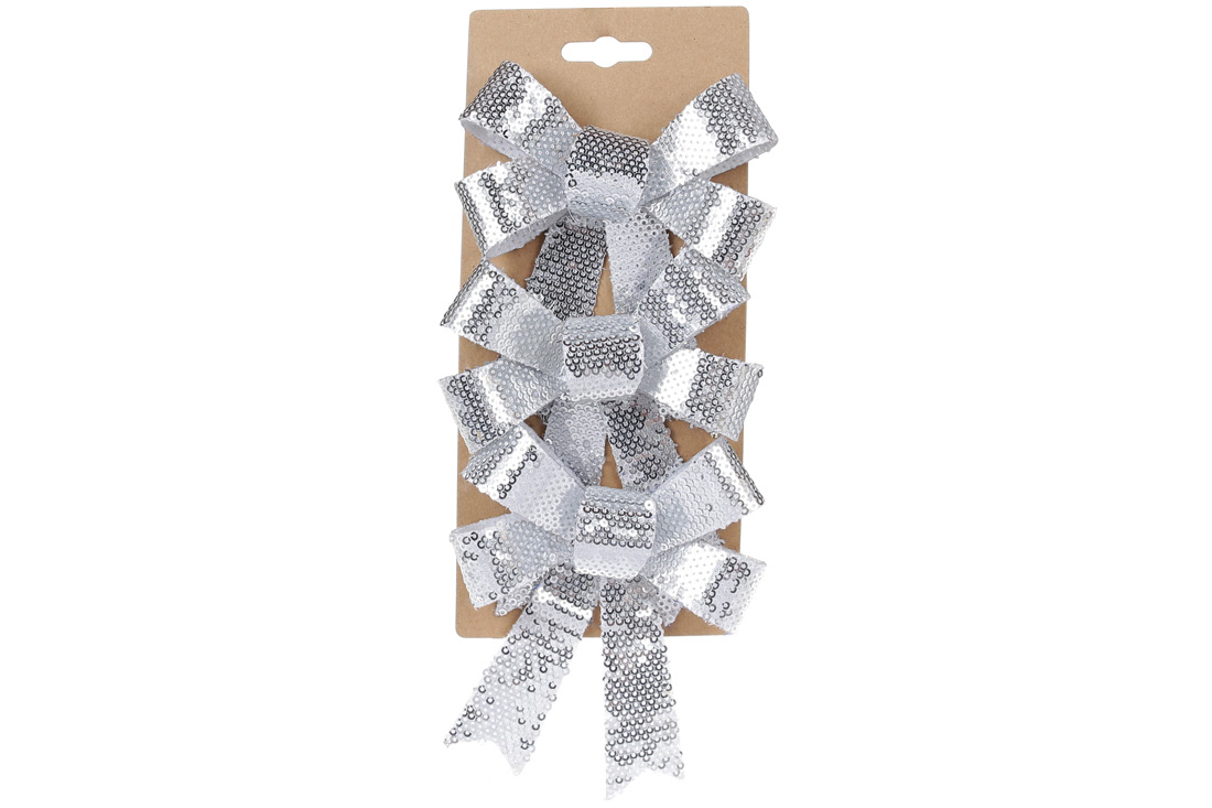 Набір (3 шт) декоративних бантів 10*12см, колір - срібні паєтки