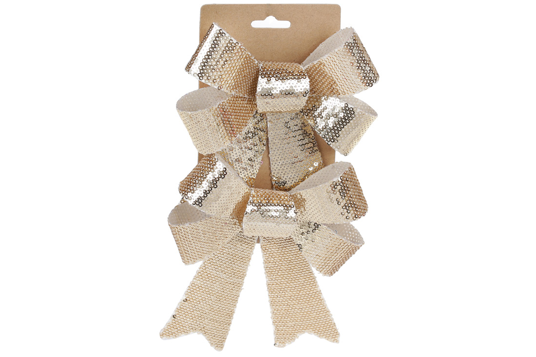 Набір (3 шт) декоративних бантів 14*20см, колір - світло-золоті паєтки