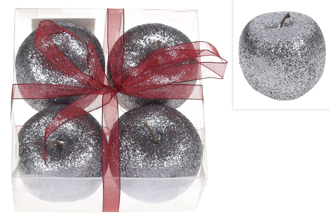 Набір (4шт) декоративних яблук на підвісі 7см, колір - графітовий гліттер