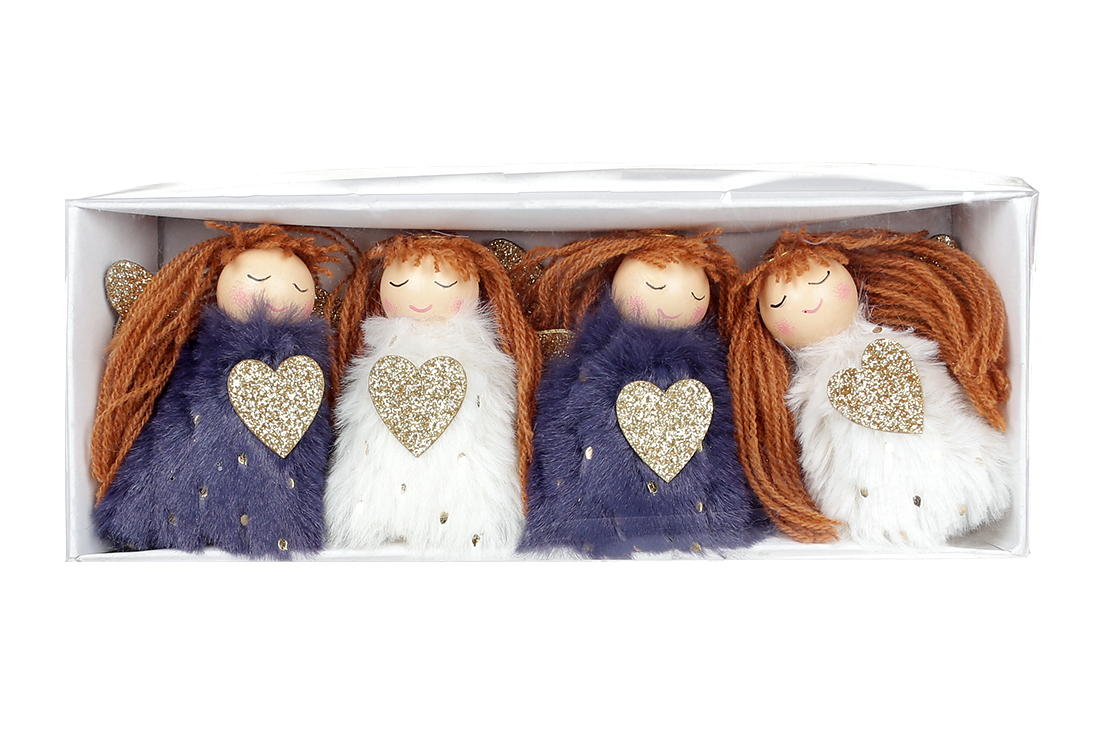 Набір (4шт) новорічних прикрас Янголочки, 6.5см, 2 кольори мікс