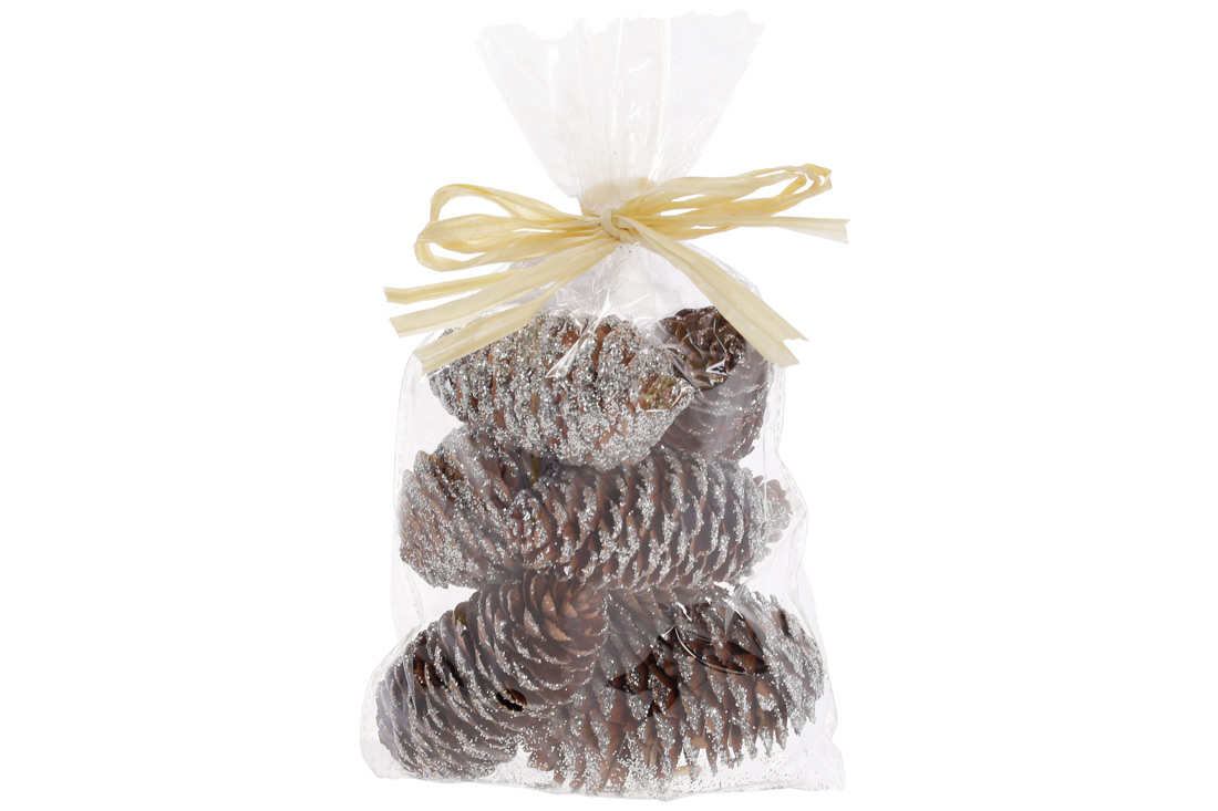 Набір (7 шт) шишок 7.5см для декору із сріблястим напиленням