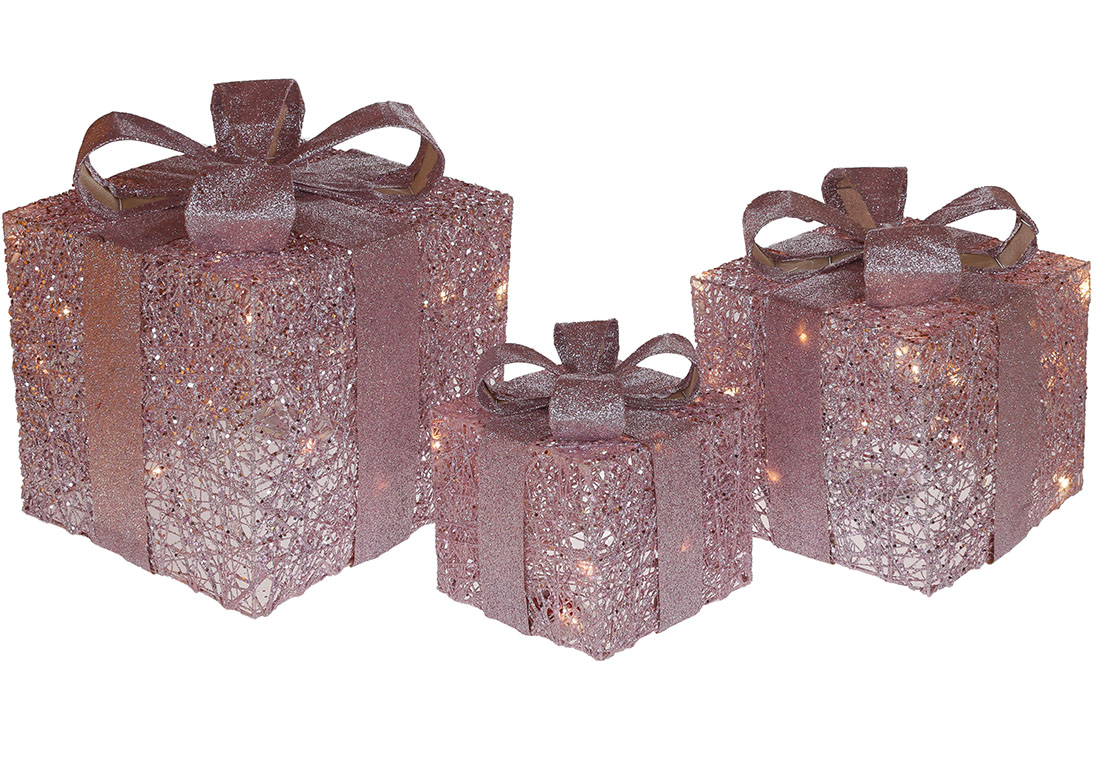 Набір декоративних подарунків (3шт) з підсвічуванням, 15см, 20см, 25см, колір - рожевий