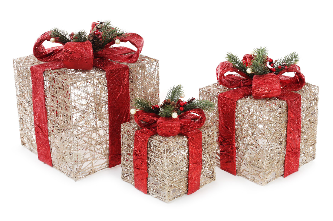 Набір декоративних подарунків (3шт) з підсвічуванням, 15см, 20см, 25см, колір - шампань із червоним
