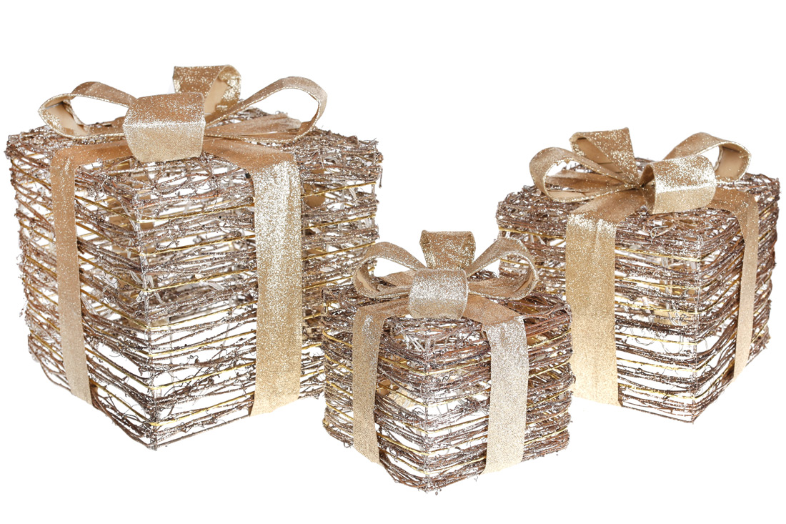 Набір декоративних подарунків (3шт) з підсвічуванням, 15см, 20см, 25см, колір - старовинне золото