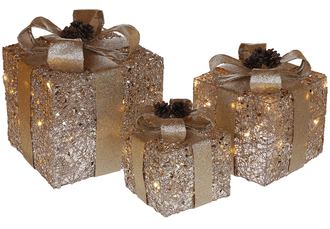 Набір декоративних подарунків (3шт) з підсвічуванням, 15см, 20см, 25см, колір - золото