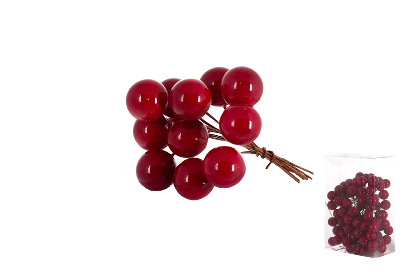 Набір декоративних ягід 100шт, 1.5см, колір - глянсовий червоний