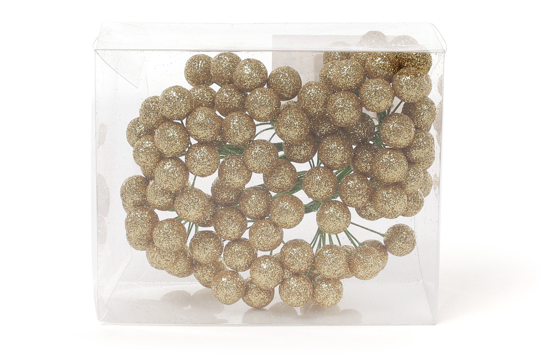 Набір декоративних ягід 12мм, 96шт, колір - яскраве золото