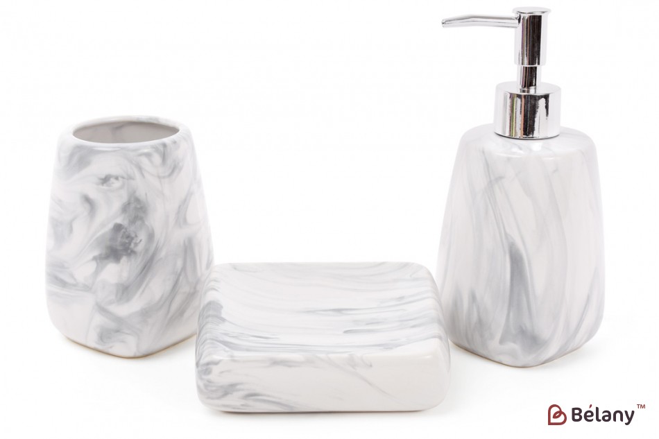 Набор для ванной (3 предмета): дозатор 425мл, стакан, мыльница, дизайн - белый мрамор
