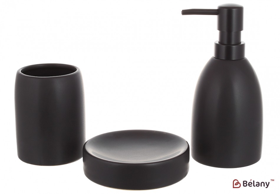 Набор для ванной (3 предмета) дозатор для мыла, стакан для зубных щеток и мыльница, дизайн - черный