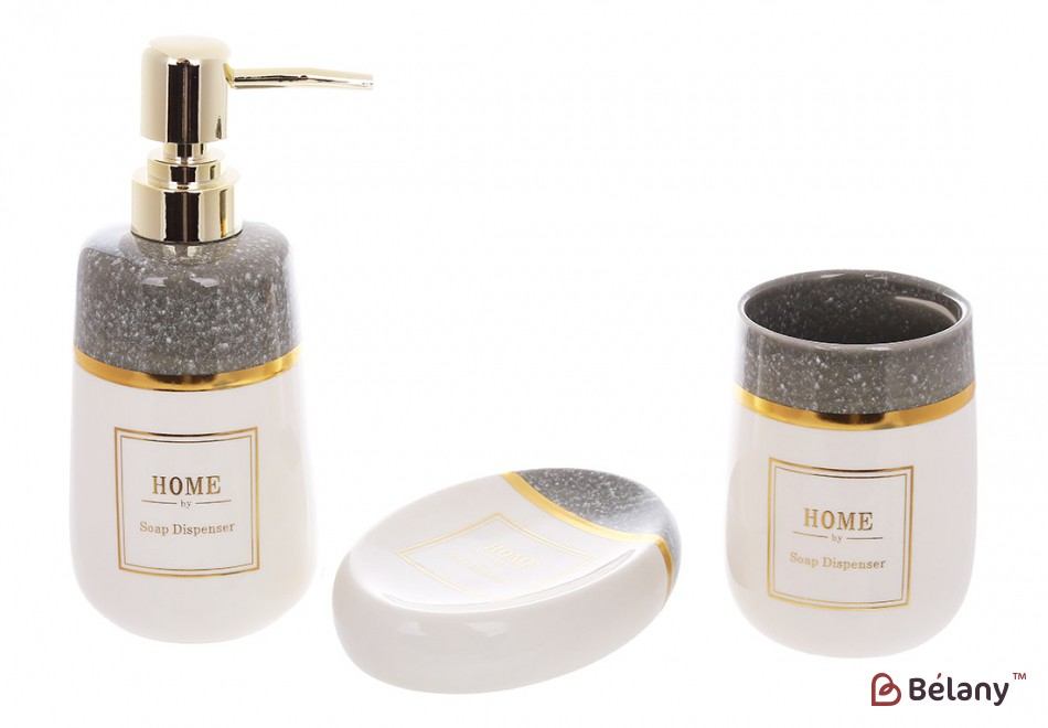 Набор для ванной Home (3 предмета): дозатор, стакан, мыльница, цвет - белый с серым