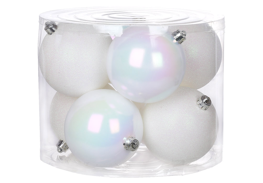 Набір ялинкових куль 10см, колір - білий, 8шт: 4шт - перламутр, 4шт - гліттер