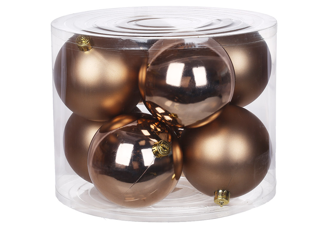 Набір ялинкових куль 10см, колір - карамельний мокко, 8шт: 4шт - матовий, 4шт - глянець