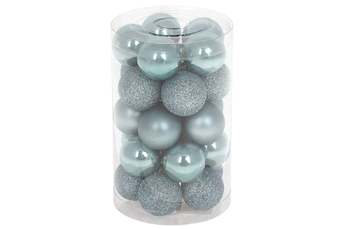 Набір ялинкових куль 3см, 25шт; колір - блакитний світанок, 10шт - перламутр 10шт - гліттер, 5шт - матовий