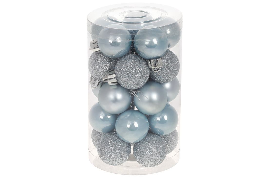 Набір ялинкових куль 3см, 25шт; колір - синій туман, 10шт - перламутр 10шт - глітер, 5шт - матовий
