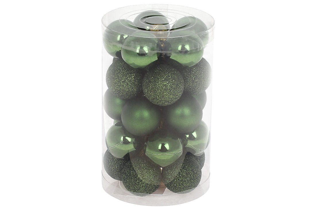 Набір ялинкових куль 3см, 25шт; колір - зеленої хвої, 10шт - глянець, 10шт - гліттер, 5шт - матовий