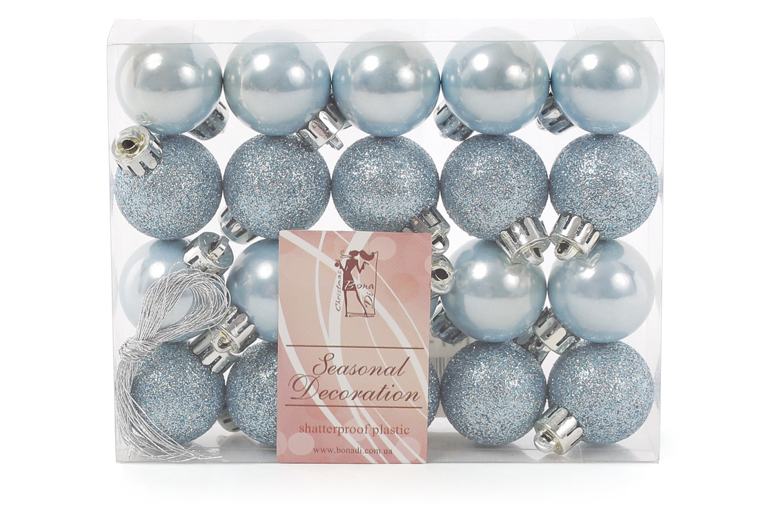 Набір ялинкових куль 3см, колір - блакитний, 20 шт.: перламутр, глітер - по 10 шт