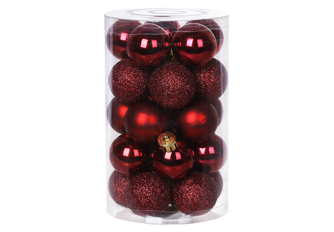 Набір ялинкових куль 3см, колір - марсала, 25шт: 10шт - глянець, 10шт - гліттер, 5шт - матовий