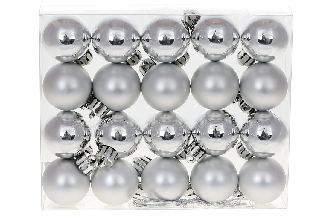 Набір ялинкових куль 3см, колір - срібло, 20шт: матовий, гліттер - по 10шт