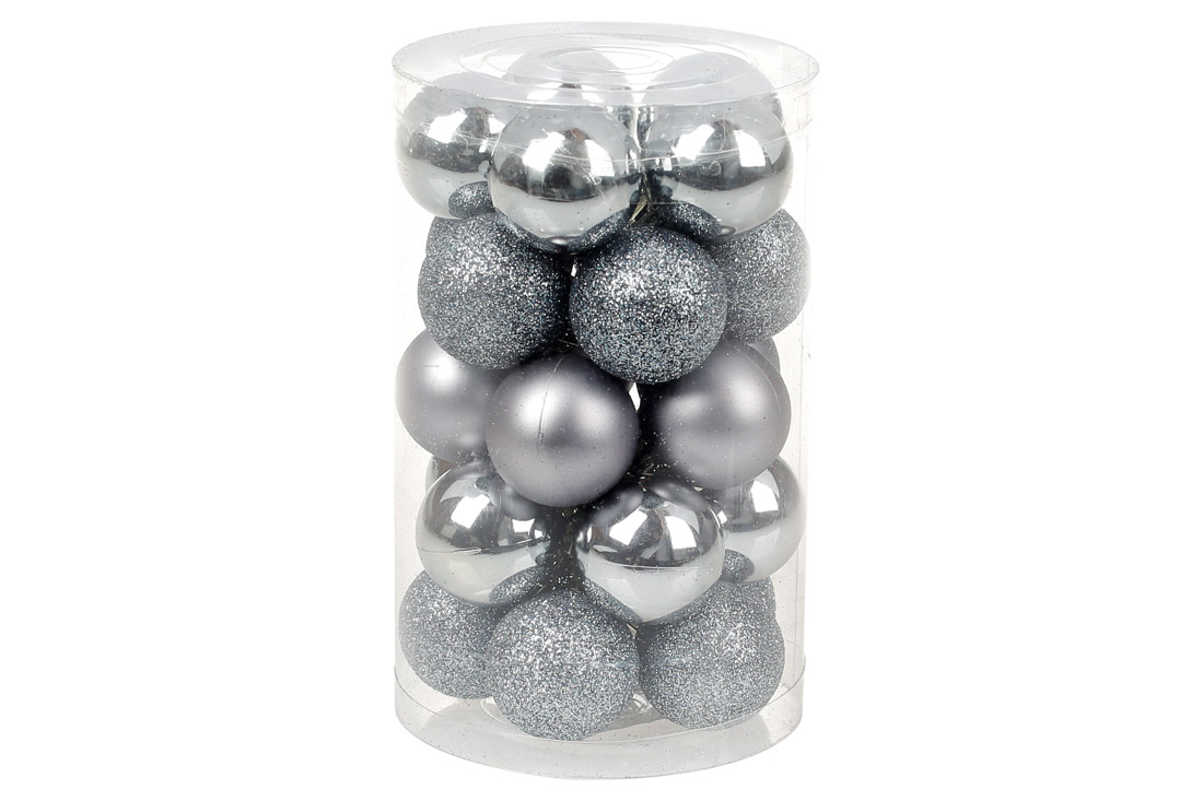 Набір ялинкових куль 3см, колір - сталевий синій, 25шт: 5шт - матовий, 10шт - глянець, 10шт - гліттер