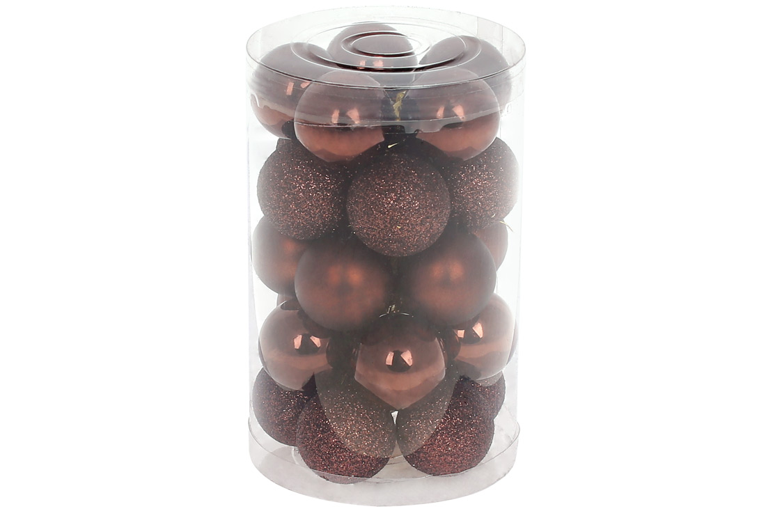Набір ялинкових куль 3см, колір - темний шоколад, 25шт: глянець та гліттер - по 10шт, матовий - 5шт