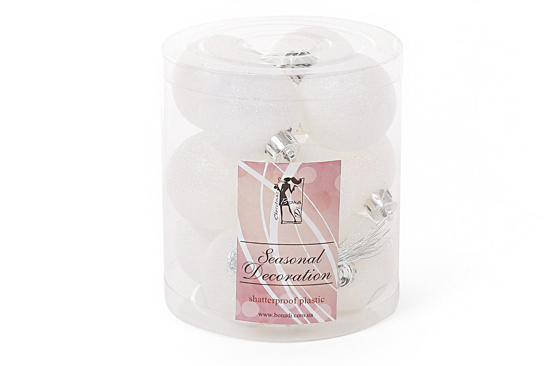 Набір ялинкових куль 4см, колір - білий глітер, 12шт
