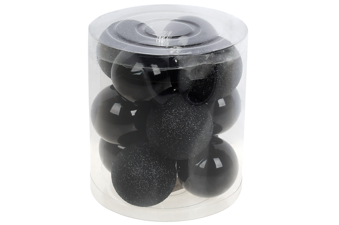 Набір ялинкових куль 4см, колір - чорний онікс, 12шт: глянець, гліттер - по 6шт