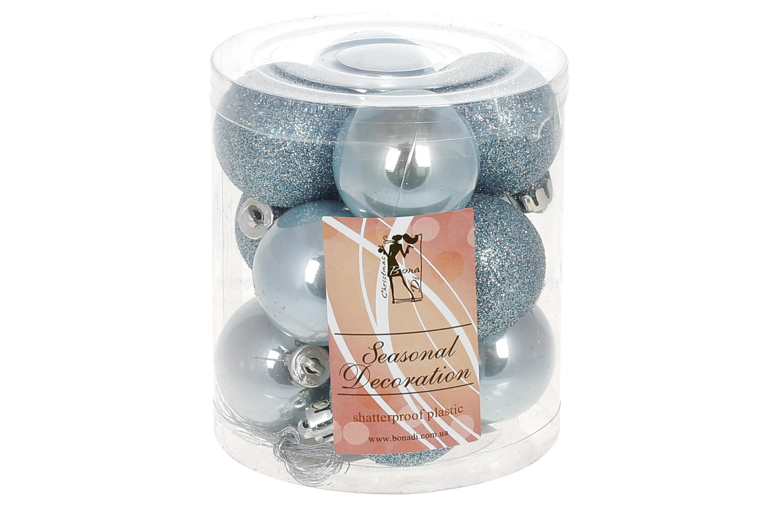 Набір ялинкових куль 4см, колір - блакитний, 12шт: перламутр та гліттер - по 6шт