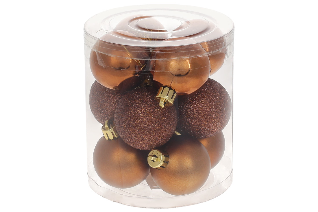 Набір ялинкових куль 4см, колір - кориця, 12шт: глянець, матовий, гліттер - по 4шт