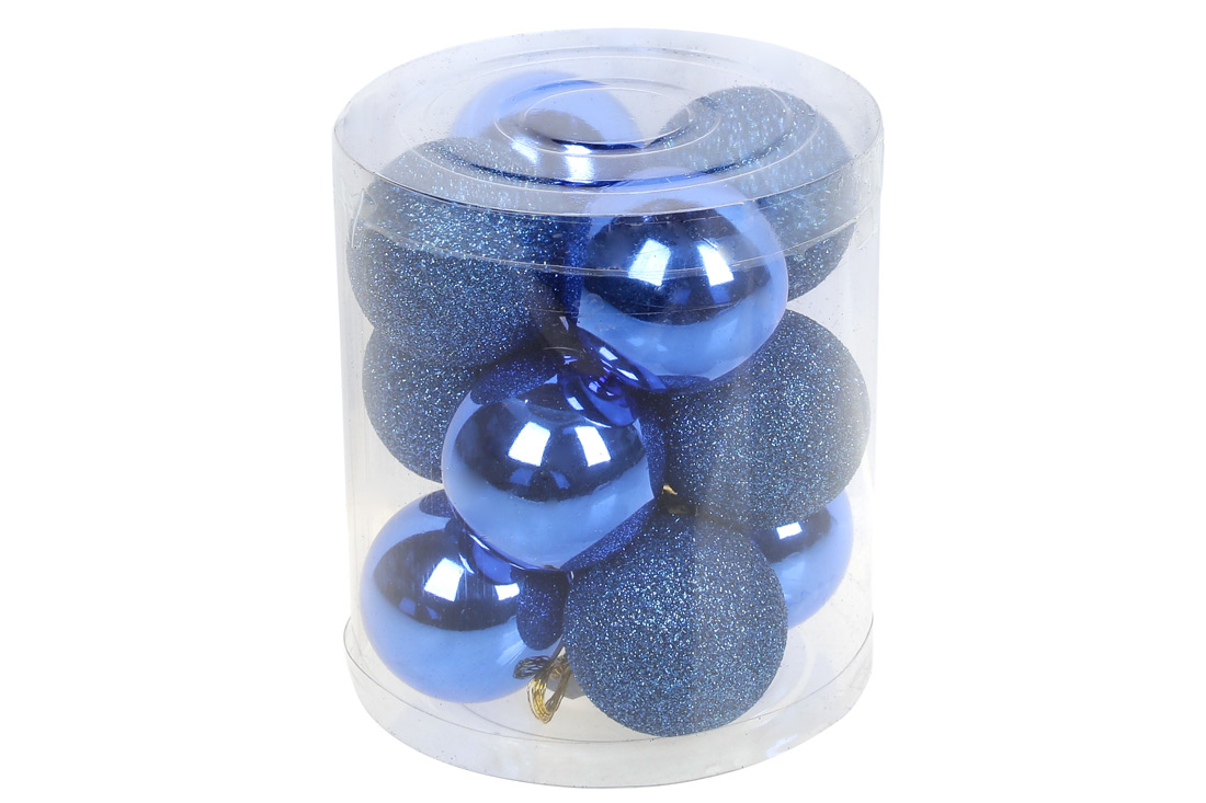 Набір ялинкових куль 4см, колір - королівський синій, 12шт: глянець, гліттер - по 6шт