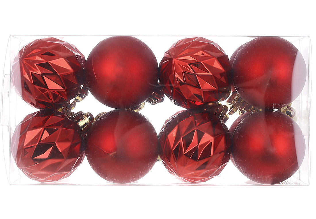 Набір ялинкових куль 4см, колір - червоний, 16шт: 8шт - рельєф глянець, 8шт - матовий