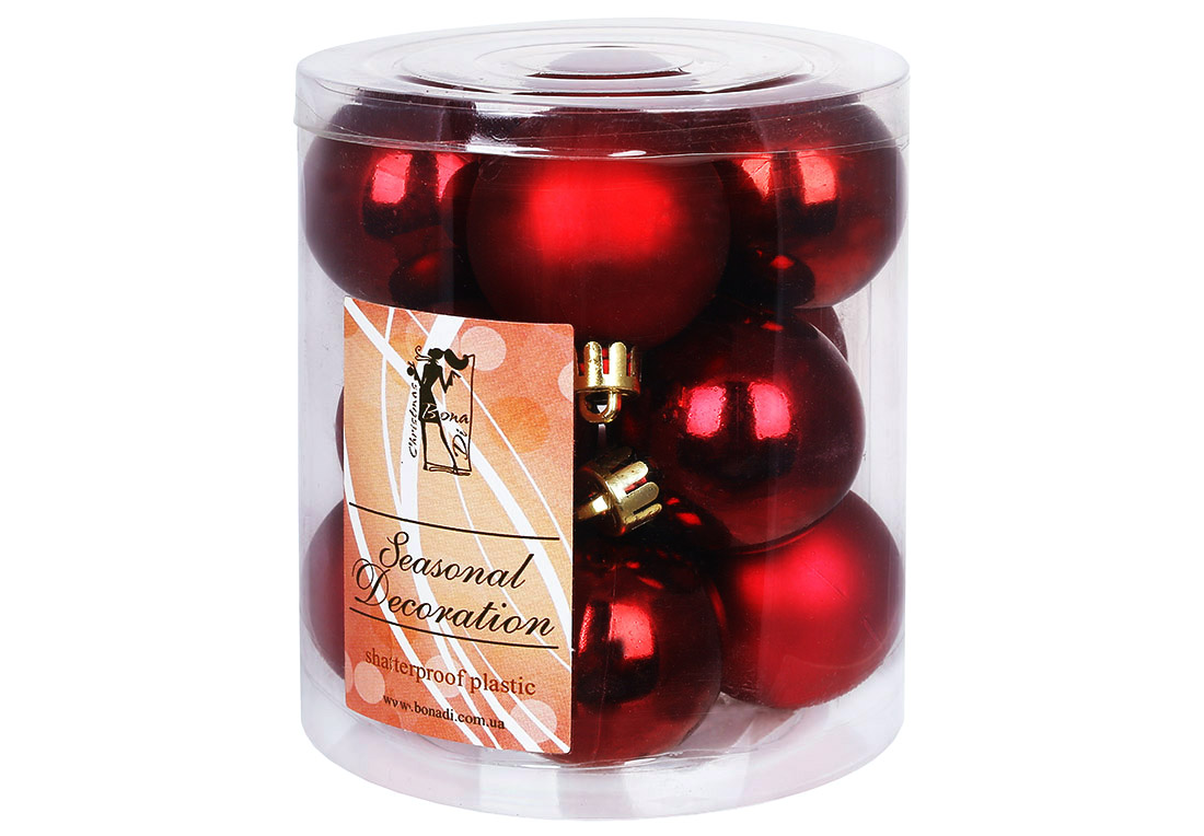 Набір ялинкових куль 4см, колір - марсала, 12шт: 6шт - глянець, 6шт - матовий