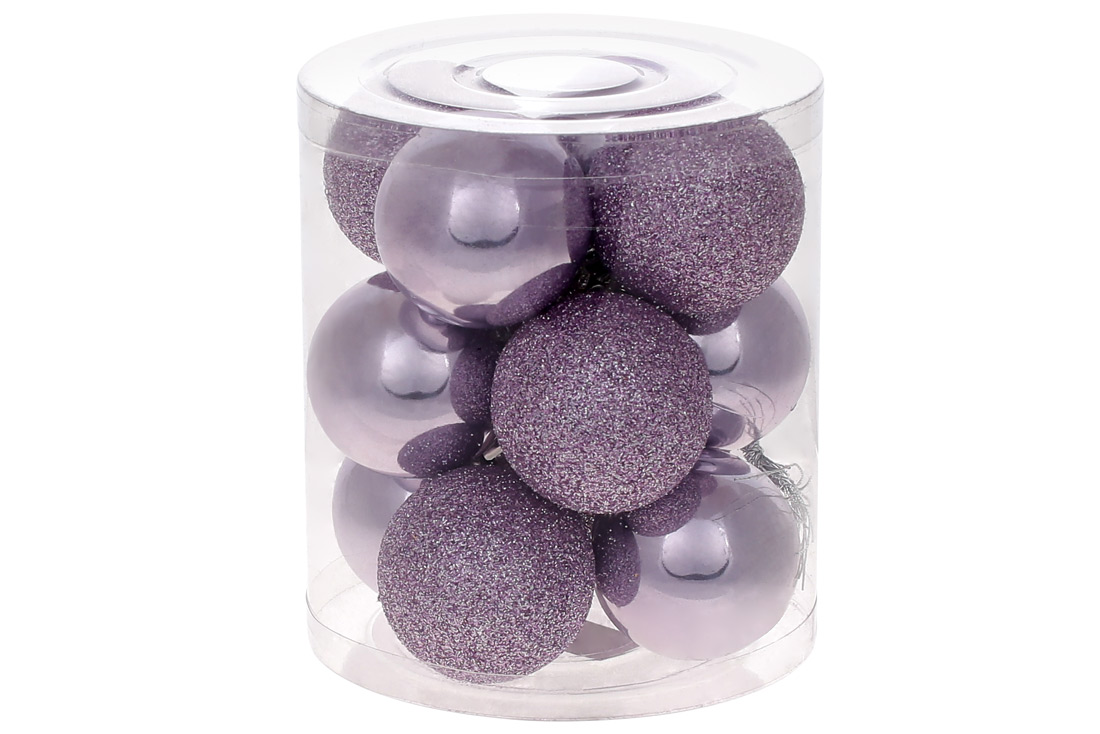 Набір ялинкових куль 4см, колір - ніжно-ліловий, 12шт: гліттер, перламутр - по 6шт