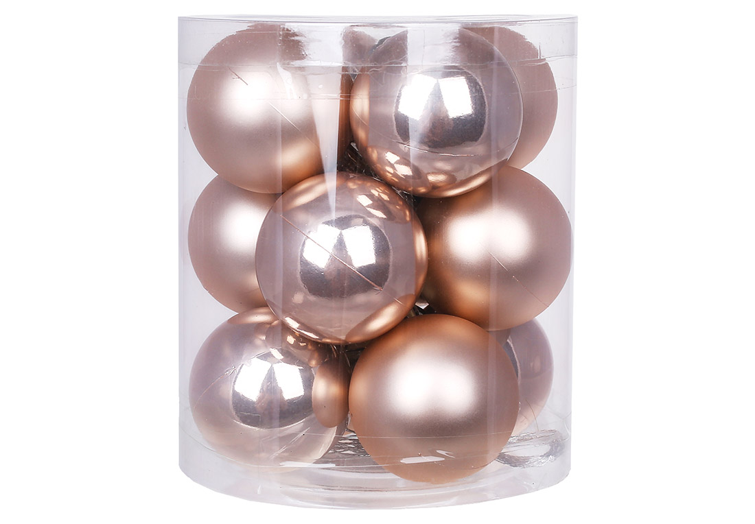 Набір ялинкових куль 4см, колір - пудровий, 12шт: 6шт - перламутр, 6шт - матовий