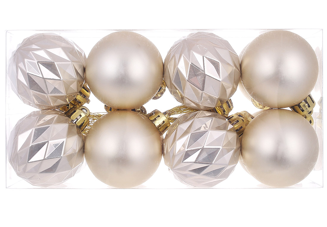 Набір ялинкових куль 4см, колір - шампань, 16шт: 8шт - рельєф перламутр, 8шт - матовий