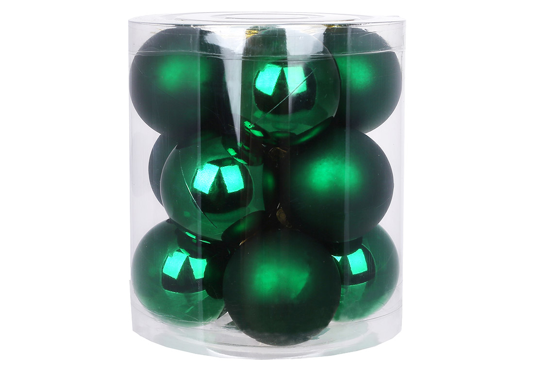 Набір ялинкових куль 4см, колір - зелений, 12шт: 6шт - глянець, 6шт - матовий
