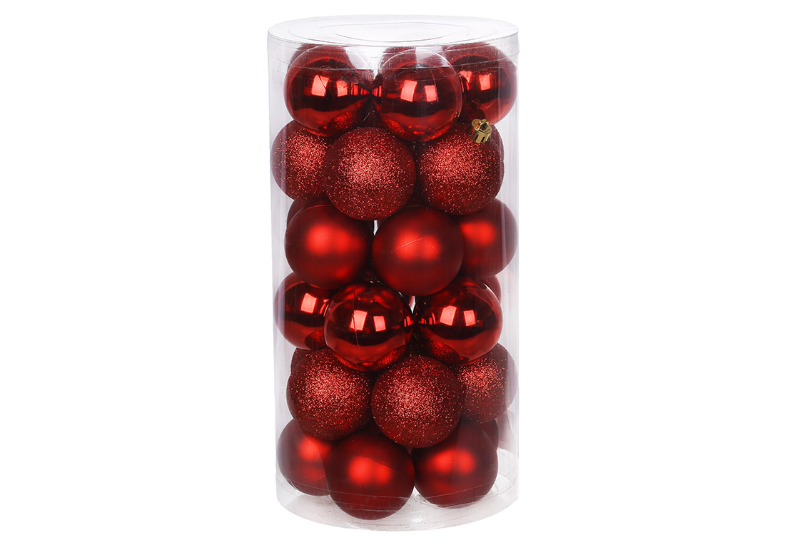 Набір ялинкових куль 5см, колір - червоний, 30шт: 10шт - гліттер, 10шт - матовий, 10шт - глянець