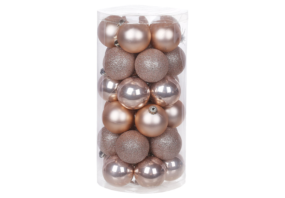 Набір ялинкових куль 5см, колір - пудровий, 30шт: 10шт - гліттер, 10шт - матовий, 10шт - перламутр