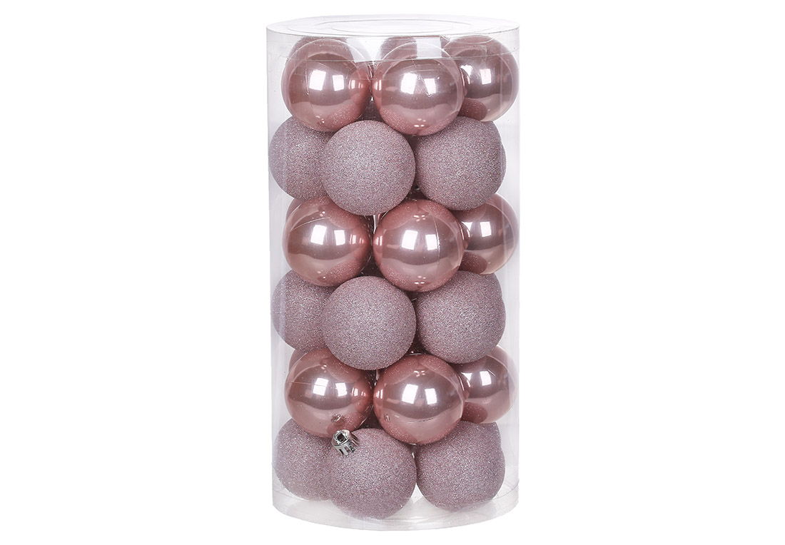 Набір ялинкових куль 5см, колір - рожевий, 30шт: 15шт - гліттер, 15шт - перламутр