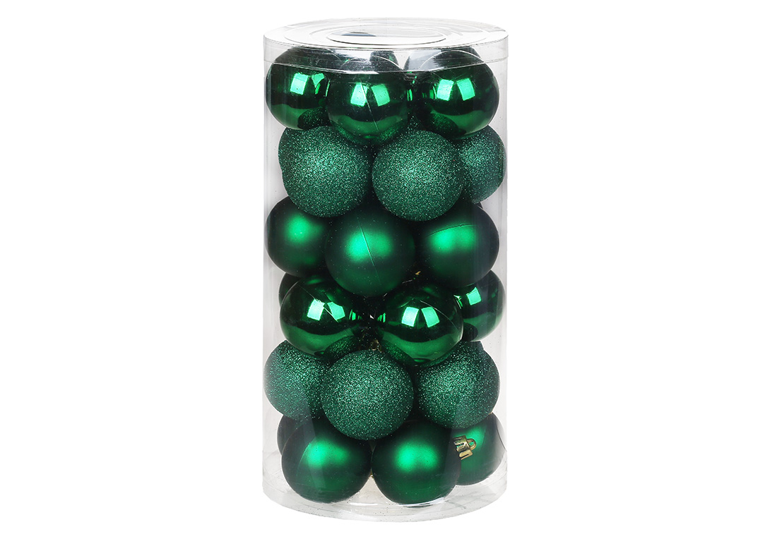 Набір ялинкових куль 5см, колір - зелений, 30шт: 10шт - гліттер, 10шт - матовий, 10шт - глянець