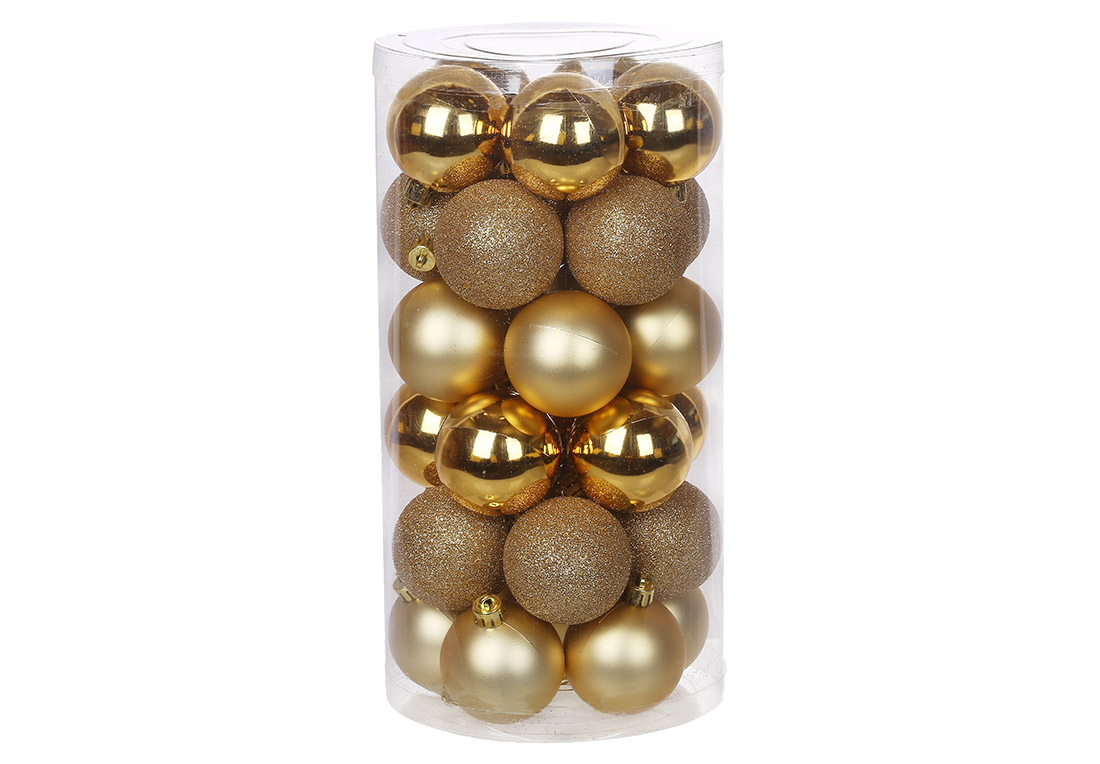 Набір ялинкових куль 5см, колір - золото, 30шт: 10шт - гліттер, 10шт - матовий, 10шт - глянець