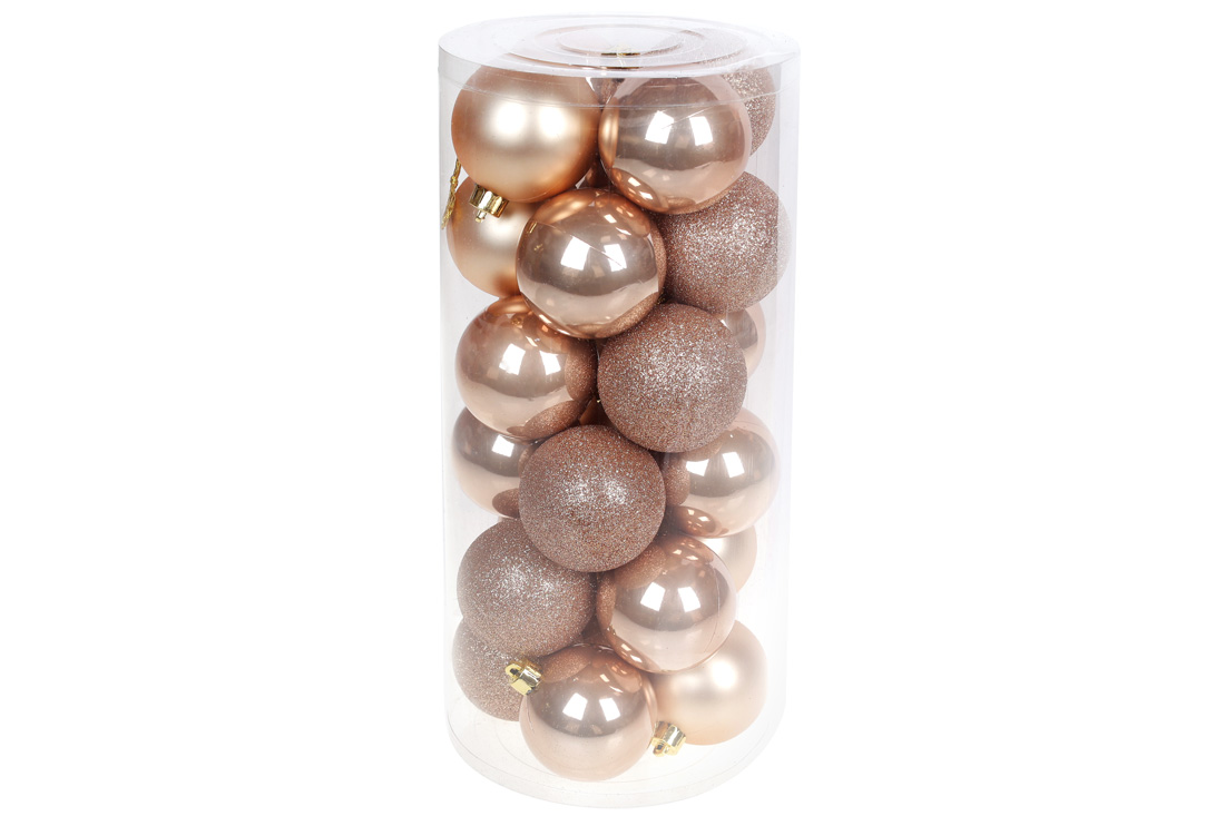 Набір ялинкових куль 6см, 24шт; колір - бежевий оксамит 12шт - перламутр, по 6шт - гліттер, матовий