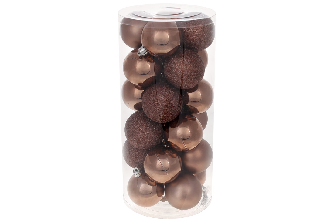 Набір ялинкових куль 6см, 24шт, колір - волоський горіх, 12шт - глянець, по 6шт - глітер, матовий