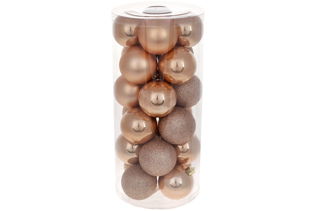 Набір ялинкових куль 6см, 24шт, колір - іриска, 12шт - перламутр, по 6шт - глітер, матовий